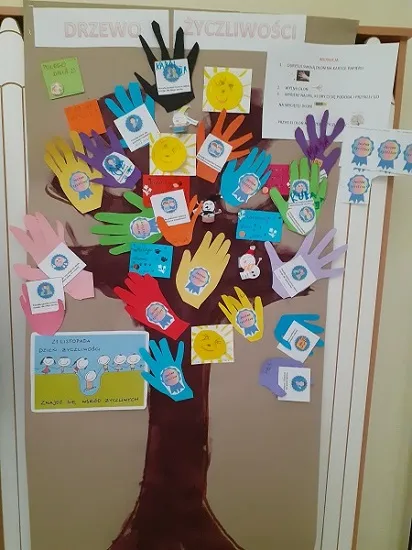Uczniowie wraz z nauczycielami i asystentami przystąpili do działania. W każdej klasie widać było uśmiechy podczas pracy. Uczniowie z klasy II b przygotowali ,, drzewo życzliwości" na którym w ciągu dnia pojawiło się wiele pięknych życzeń i pozdrowień. W kuchni dydaktycznej na tą okazję przygotowano trochę pyszności.