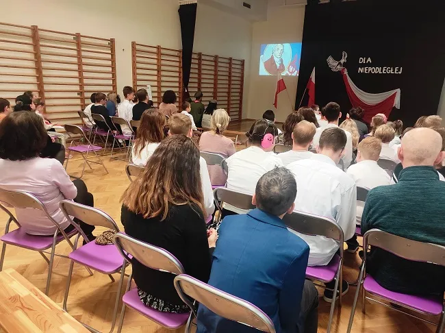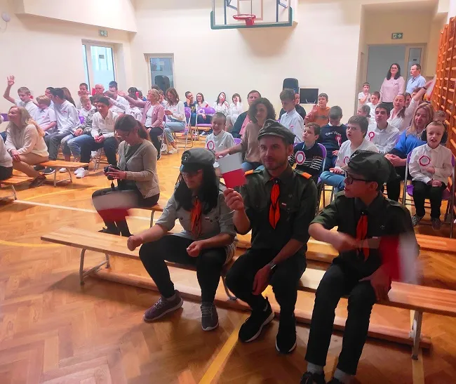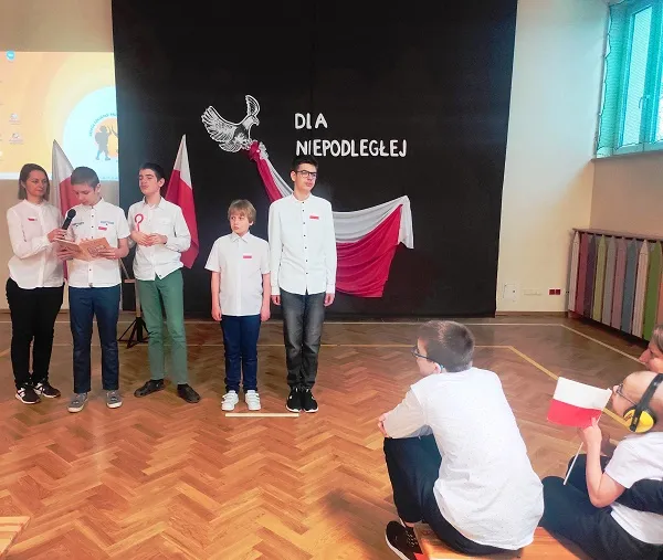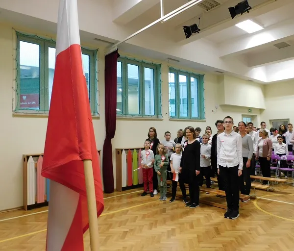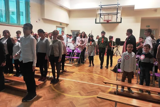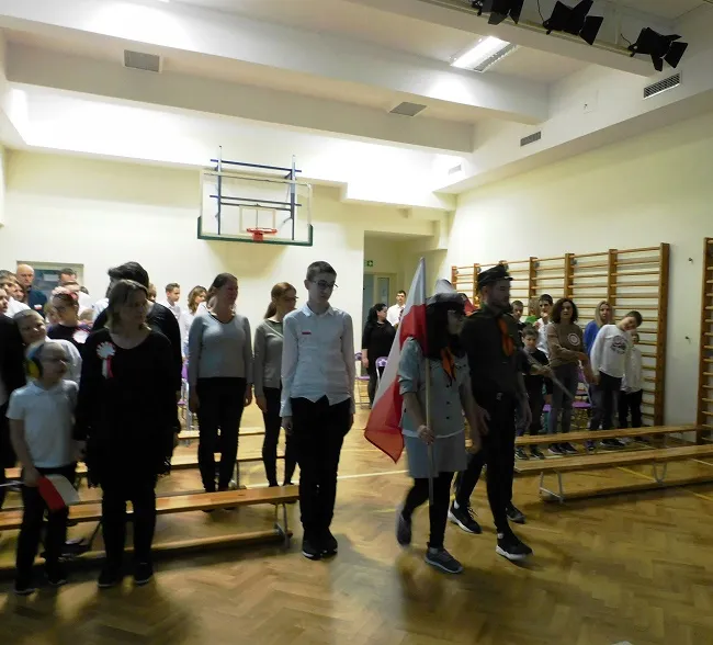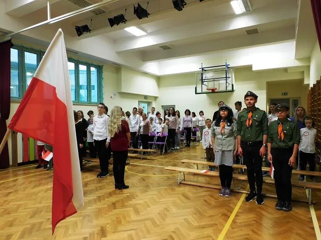 W przeddzień Narodowego Święta Niepodległości, w czwartek 10 listopada 2022 roku, w naszej szkole odbył się uroczysty apel. Harcerze i druh Kamil z szacunkiem wnieśli flagę Polski, a następnie Pani Marzena, nasza Pani od historii, przypomniała uczniom znaczenie Święta 11 Listopada. Bardzo ważnym momentem było wspólne, werbalne i emocjonalne, odśpiewanie Hymnu Narodowego. Godnie włączyliśmy się w ogólnopolską akcję „Szkoła do Hymnu".