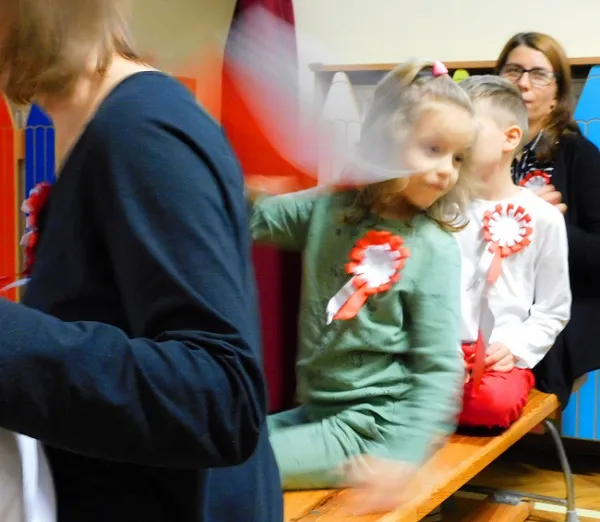 Na zakończenie, brawami nagrodziliśmy wszystkich, którzy z pomocą Rodziców, za co dziękujemy, niecodziennym, eleganckim strojem wyrazili swój szacunek do świętowania Niepodległej, a w szczególności doceniliśmy Tych, którzy – chociaż nie lubią koszuli, jej kołnierzyka i guzików – założyli ją i wytrwali!