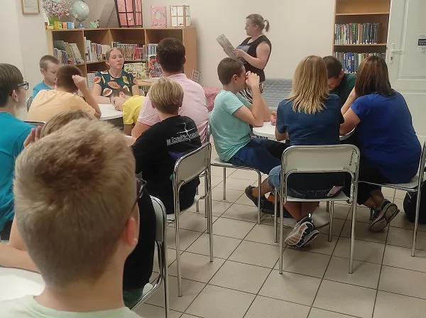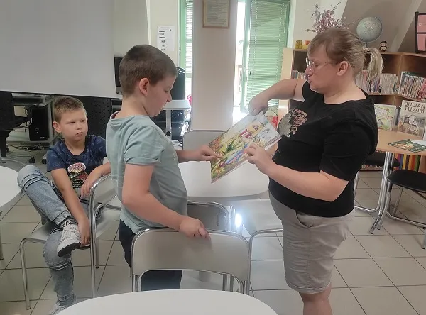 Niewątpliwie, warto poznawać taką literaturę, dlatego w środę, 18 września i w piątek, 20 września 2024 roku uczniowie wyruszyli na czytelnicze spotkanie z kolejnymi utworami pana Juliana. W Bibliotece Publicznej dla Dzieci i Młodzieży nr 8 przy ul. Ząbkowskiej, pani Kierownik Marta pięknie odczytała dwa wiersze pt.: „Rzepka” i „Lokomotywa”, a potem uczniowie niezwykle starannie kolorowali ilustracje. W kąciku tematycznym można było przejrzeć książki o poecie oraz Jego autorstwa.