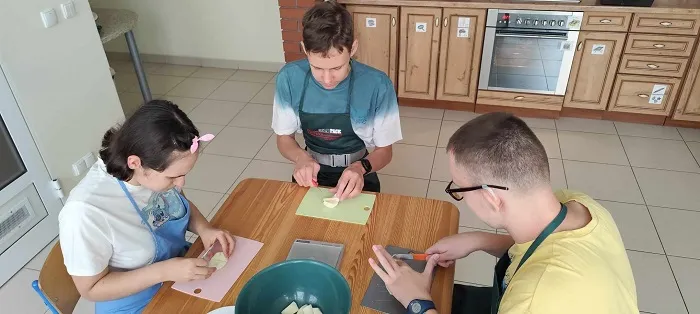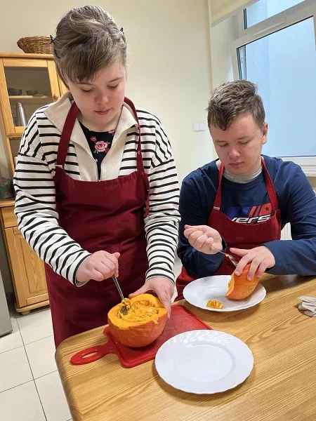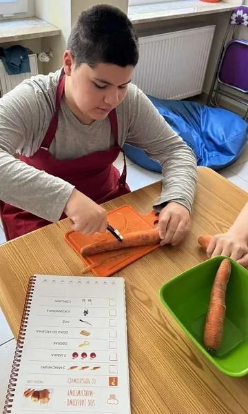 Jedzenie o różnych stopniach miękkości i chrupkości, zachęca uczniów do odkrywania i wybierania tego, co im najbardziej smakuje. Podczas zajęć w kuchni dydaktycznej dzieci i młodzież uczą się współpracy między sobą oraz nabywają umiejętności z zakresu gospodarstwa domowego i przygotowywania potraw.