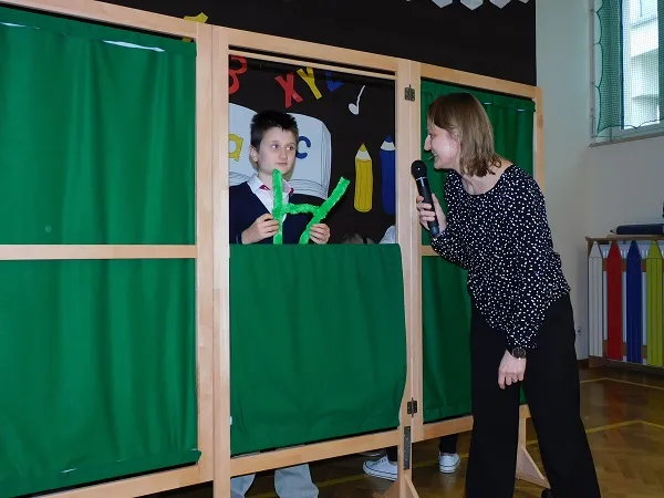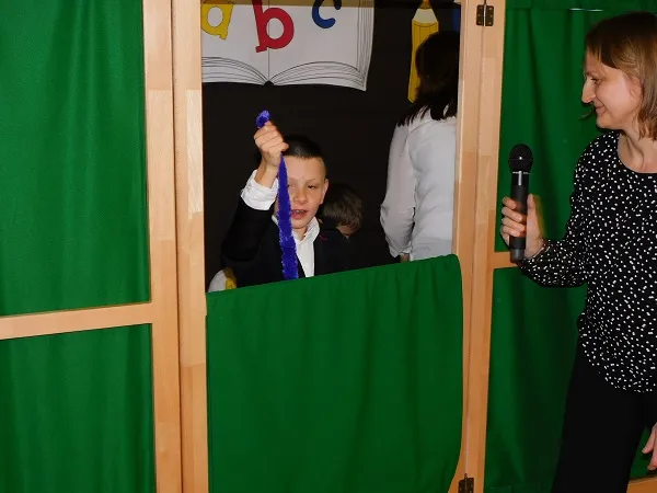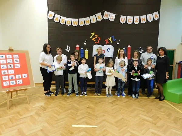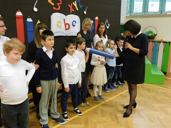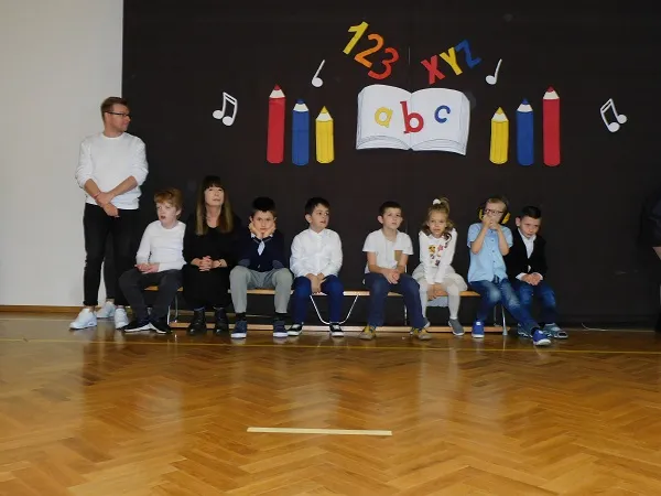Po uroczystym wprowadzeniu pierwszych klas odbył się sprawdzian wiedzy i umiejętności naszych pierwszoroczniaków. Dzieci świetnie poradziły sobie z pytaniem, czym jest abecadło, prezentując własną interpretację wiersza Juliana Tuwima pt. „Abecadło”. Odpowiedź pierwszaków zyskała akceptację publiczności, dlatego mogliśmy przystąpić do uroczystego ślubowania i pasowania na ucznia.
