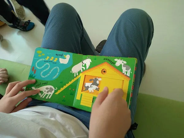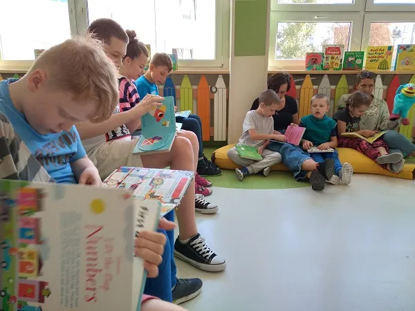 W pierwszej części spotkania uczniowie poznali i utrwalili sobie nazwy zwierząt wiejskich. Następnie aktywnie wzięli udział w czytaniu uczestniczącym dwóch opowieści (książek o dużych rozmiarach tzw. Big Books) „Cat and Mouse” oraz „Spots, Feathers and Curly Tails”. W drugiej części spotkania odbyło się indywidualne czytanie wybranych przez dzieci książeczek sensorycznych. Uczniowie zgodnie ze swoimi zainteresowaniami oraz preferencjami wybierali książeczki dotykowe, z przesuwanymi obrazkami i otwieranymi okienkami. Uczniowie aktywnie oraz z dużym zaangażowaniem uczestniczyli w całym spotkaniu.