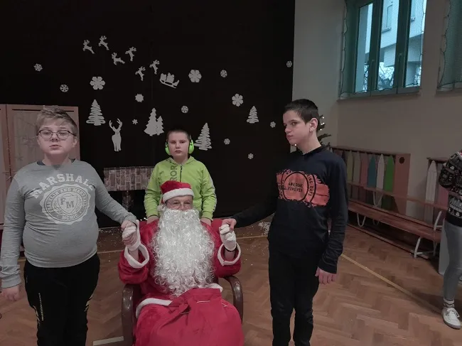 W końcu zadźwięczały dzwonki u sań… Dla każdego Mikołaj miał prezent, uśmiech, dobre słowo. Na twarzach uczniów malowały się radość, niedowierzanie, zaskoczenie. Emocje sięgały zenitu. Prezenty sprawiły mnóstwo frajdy, zadowolenia. Z niecierpliwością prezenty zostały rozpakowane, obejrzane, a niektóre skonsumowane. Każdy chciał mieć zdjęcie z Mikołajem, żeby pamiętać o miłych chwilach…