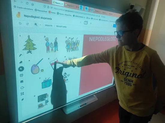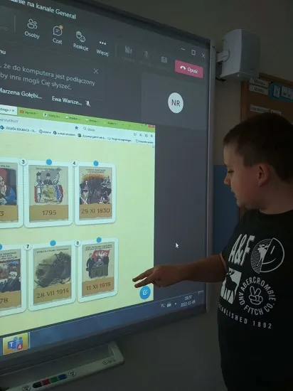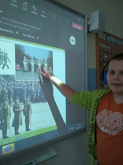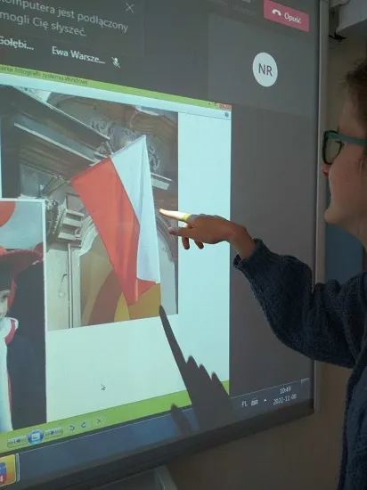 We wtorek, 8 listopada 2022 roku, połączyliśmy się online z Muzeum Józefa Piłsudskiego w Sulejówku, z którego wspaniałą lekcję dla grupy uczniów poprowadziła Pani Agata Matraś. Temat „Flagi, pieśni, defilady… O świętowaniu 11 listopada” zapowiadał się ciekawie. I rzeczywiście, zajęcia takie były: różnorodne, aktywizujące, przypominające ważne wydarzenia z historii Polski oraz znaczenie symboli narodowych.