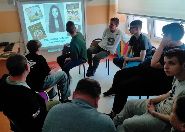 Pani Natalia opowiadała, rozmawiała z uczniami, tłumaczyła, jak tworzy się ilustracje w specjalnym programie. Niestety, okazało się, że program nie wystarczy. W twórczej pracy zawsze potrzebna jest umiejętność rysowania, dobierania kolorów i artystyczna dusza…