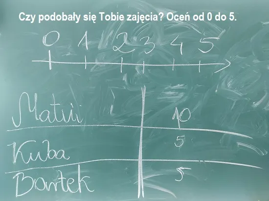 Dziękujemy Pani Emilii – warsztaty podobały się wszystkim! Oceny zajęć, które wystawili: Matvii, Kuba i Bartek są imponujące!