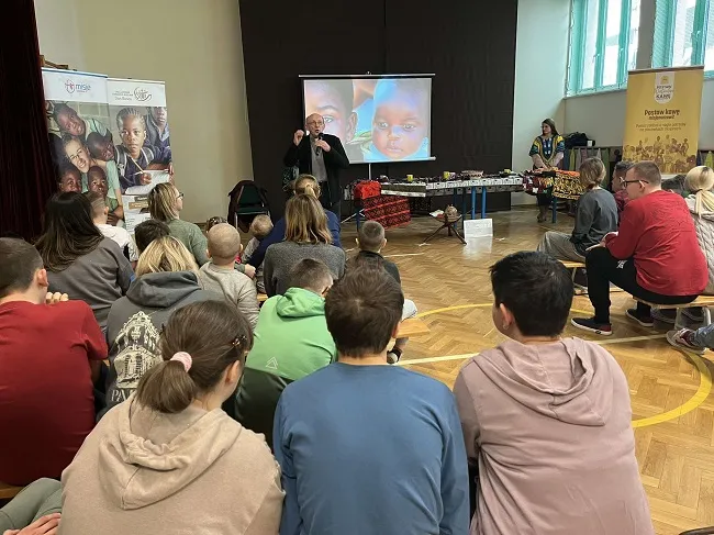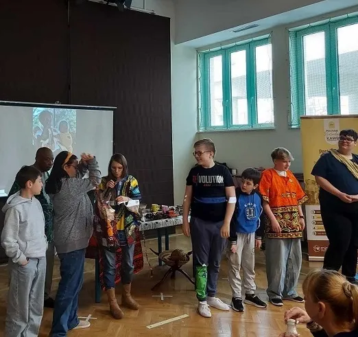 Uczyliśmy się prostych słówek w języku afrykańskim, który nie przypominał nam żadnego znanego języka obcego i nosiliśmy kolorowe chusty oraz przymierzaliśmy jaskrawe koszule. Natomiast zdjęcia prezentowane przez misjonarkę, która spędziła w Zambii kawałek życia pracując wśród afrykańskich dzieci pokazały nam, że są ludzie daleko stąd o odmiennym kolorze skóry, którzy uśmiechają się jak my z powodu tych samych rzeczy, dzieci bawią się, chłopcy grają w piłkę nożną zrobioną z liści bananowca, a inni robią z drutu zabawki, małe samochody.