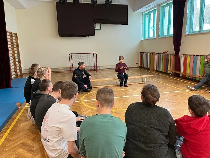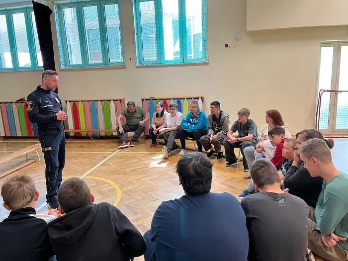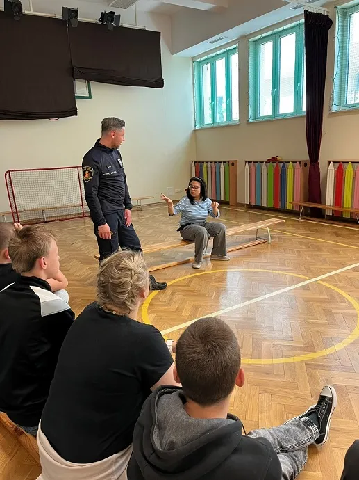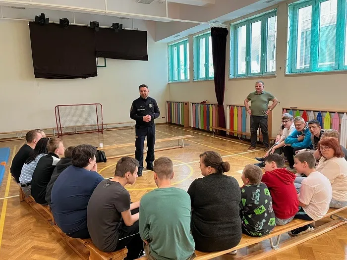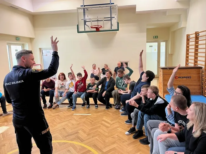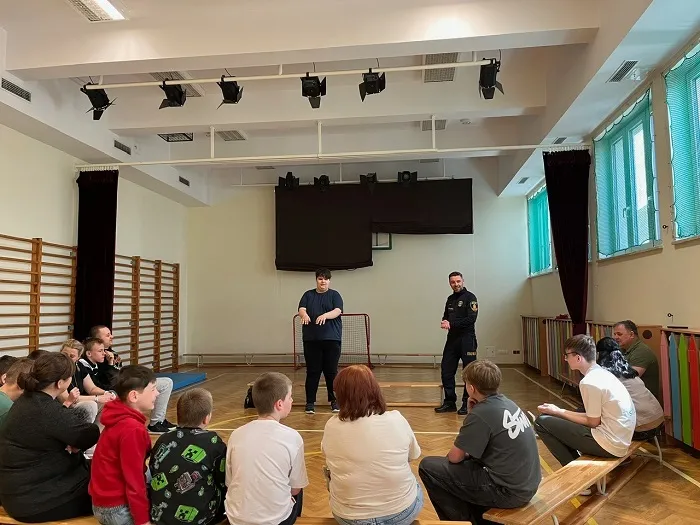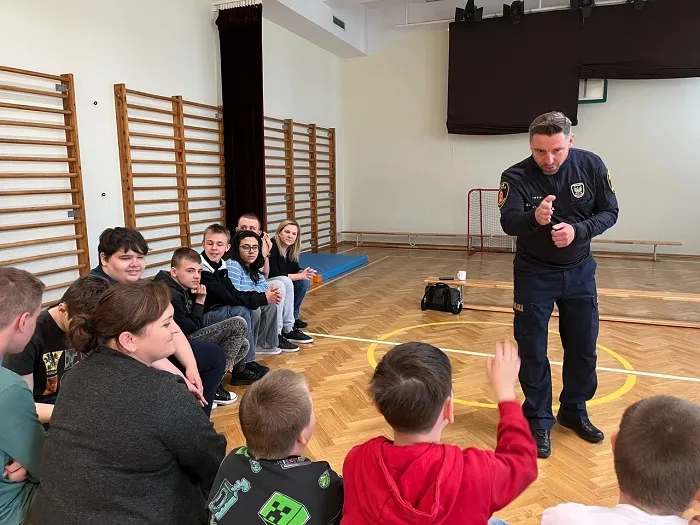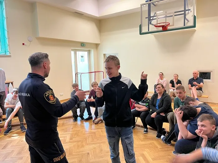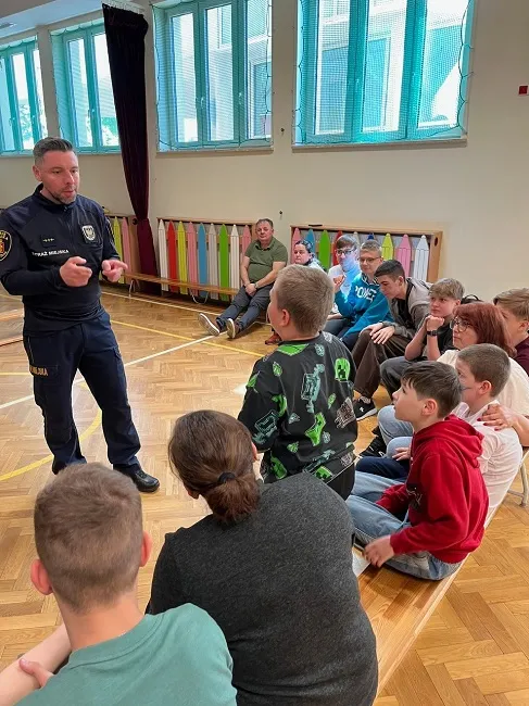 W trakcie spotkania poruszyliśmy także ważny temat — odpowiedzialności, plotek. Uczniowie dowiedzieli się, jak plotki mogą ranić innych i dlaczego warto być ostrożnym w mówieniu o innych ludziach. Porozmawialiśmy również o tym, jak trudno jest przeprosić, ale jak bardzo ważne to jest, by naprawić relacje i dbać o szacunek do siebie nawzajem. Wszystko odbyło się w formie zabawy, bo jak wiemy, nauka poprzez zabawę to najlepszy sposób na zapamiętywanie ważnych informacji. Dziękujemy Panu Strażnikowi za fantastyczne spotkanie i cenne lekcje, które na pewno zapamiętamy.