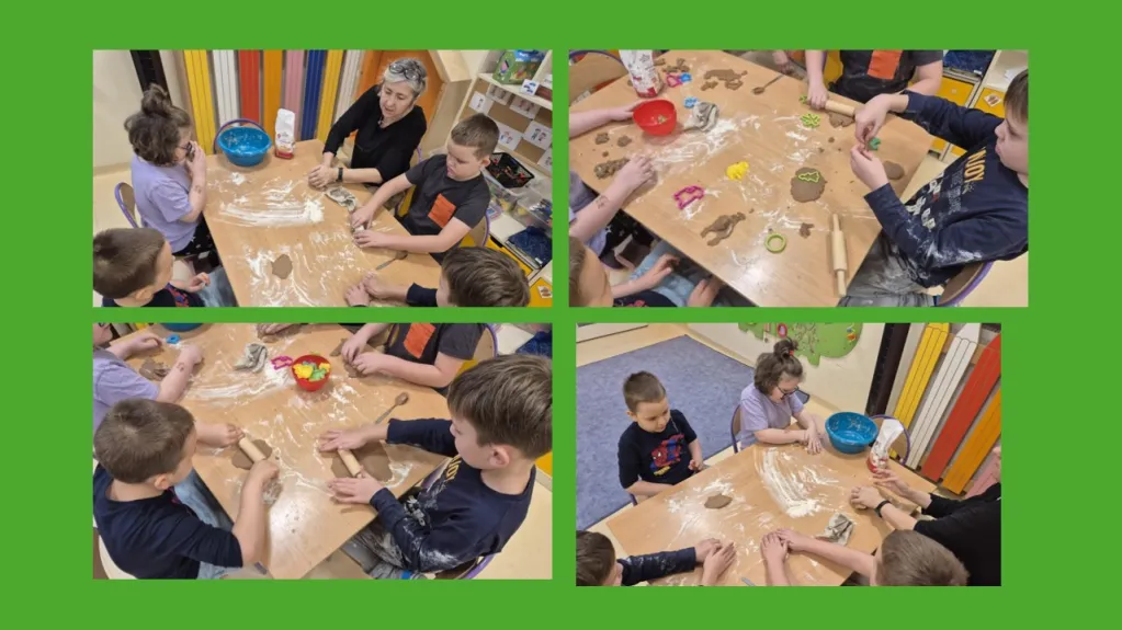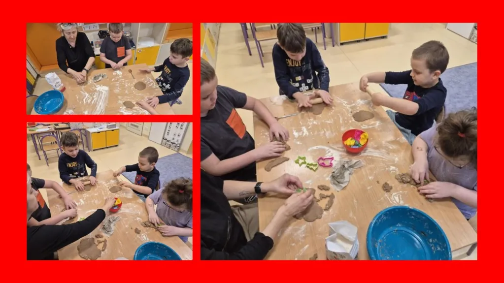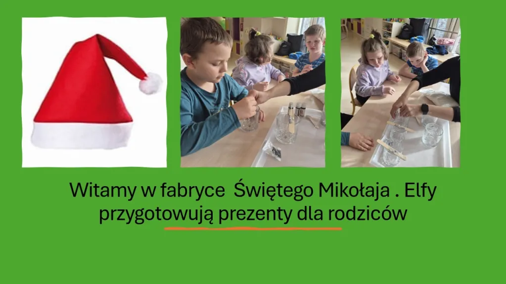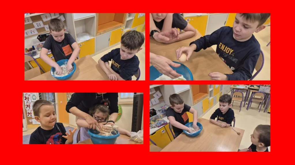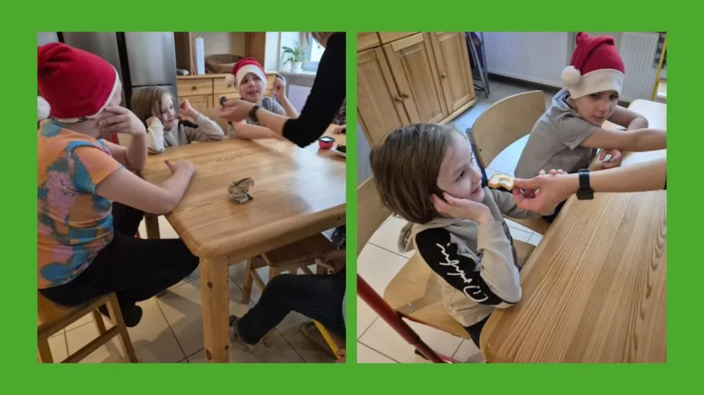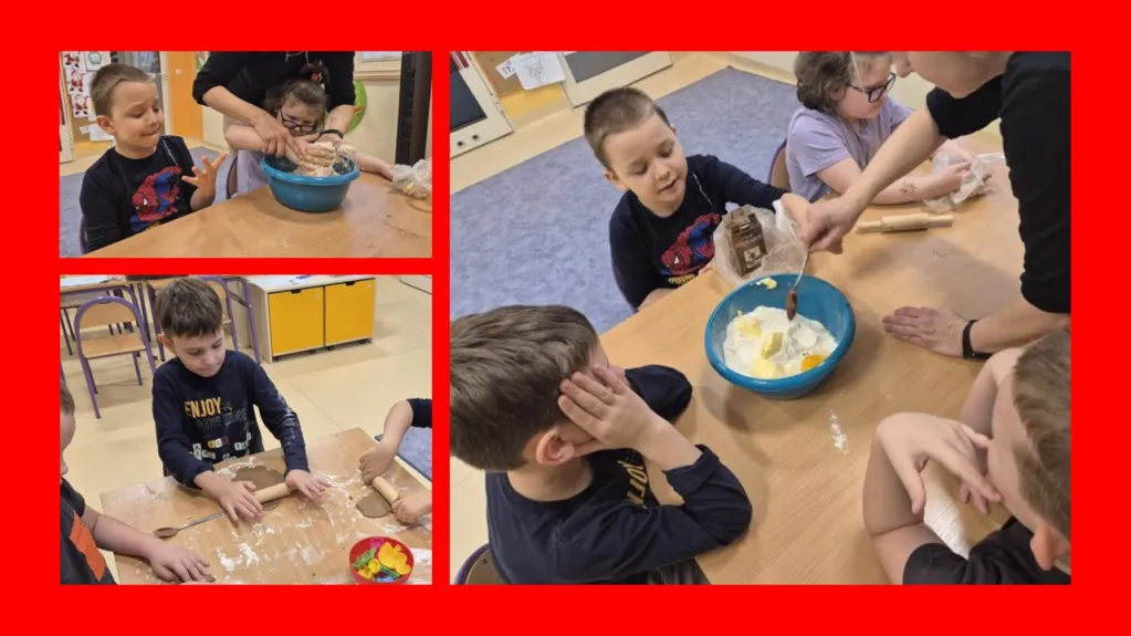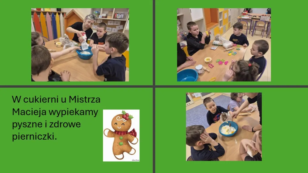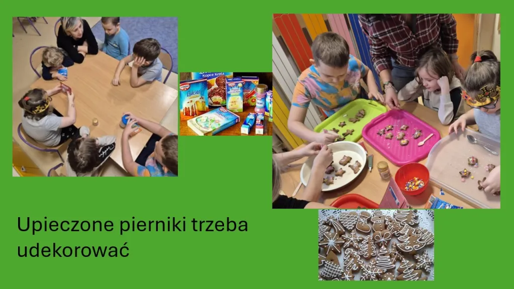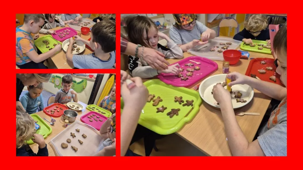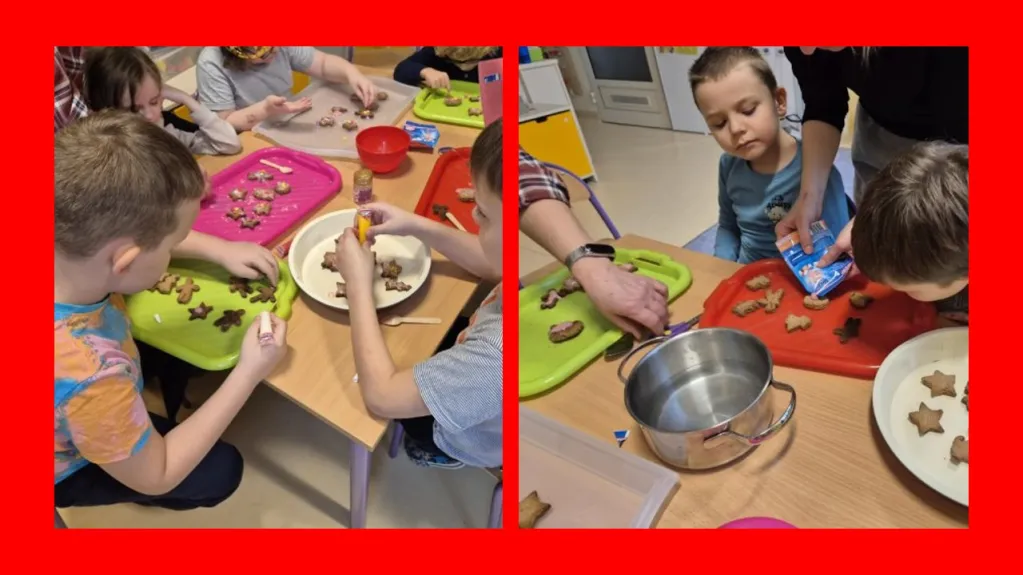 Po przedstawieniu jasełkowym zaprosiliśmy rodziny naszych podopiecznych z obu grup do sali przedszkolnej. To właśnie tam dzieci wręczyły im prezent w postaci własnoręcznie odlanej świeczki oraz poczęstowały przepysznymi pierniczkami i kompotem, które także zostały przygotowane były dziełem naszych przedszkolaków. Było miło, świątecznie i przede wszystkim bardzo rodzinnie, a wspólnie spędzony czas dodatkowo urozmaicił nam pokaz slajdów. Na poszczególnych zdjęciach prezentacji zobaczyć można było jak dzieci dzielnie mieszały składniki, ugniatały ciasto, zdobiły pierniczki, barwiły wosk lub przygotowywały kompot. Wszystko to sprawiało im wielką radość, a w efekcie tej wartej każdej pochwały pracy dzieci mogły obdarować dziś swoje mamy, babcie i dziadków wspaniałymi podarkami, jeszcze bardziej przy okazji wzbogacając ten dzień świąteczną magią i rodzinną atmosferą.