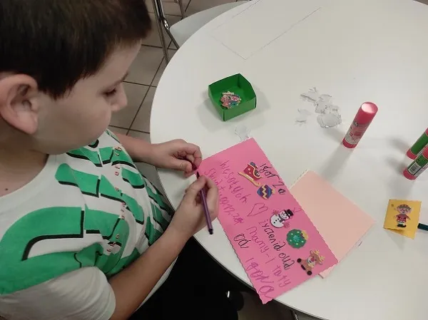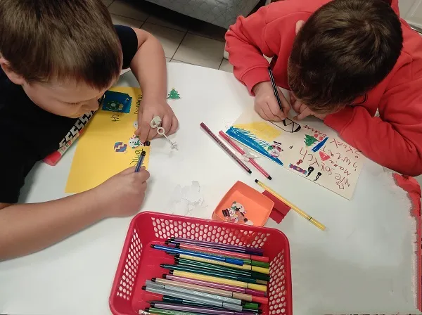 W poniedziałek, 9 grudnia 2024 roku uczniowie klasy drugiej odwiedzili zaprzyjaźnioną Bibliotekę nr 8 przy ulicy Ząbkowskiej i uczestniczyli w zajęciach nawiązujących do zbliżających się Świąt Bożego Narodzenia. Wszyscy z zaangażowaniem wykonali kartki świąteczne, samodzielnie je ozdobili i napisali życzenia dla rodziców. Nagrodą dla dzieci była zabawa w kąciku, który nieodmiennie zaciekawia i zachwyca 😀