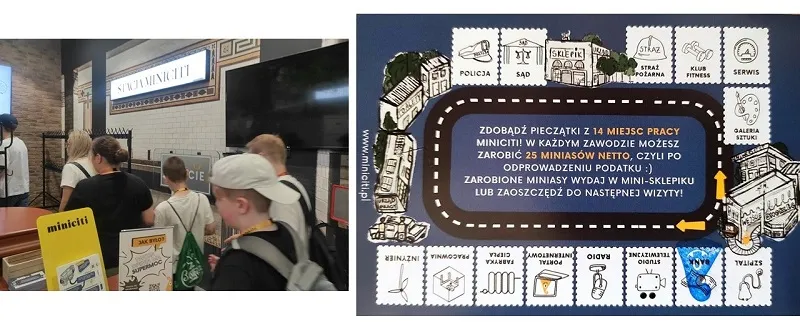 Po wybraniu interesujących zawodów i po obejrzeniu przestrzeni wspólnej Miniciti, uczestnicy udali się do wybranych obszarów. Studio telewizyjne, radio, szpital, straż pożarna, warsztat inżynierski, umożliwiały wcielanie się w role zawodowe i wykonywanie praktycznych czynności.