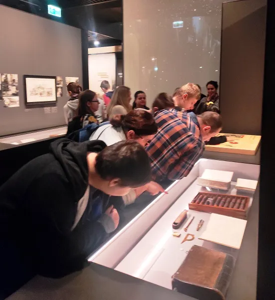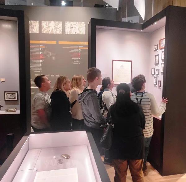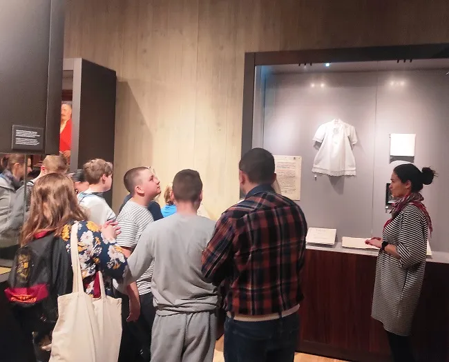 Z zainteresowaniem oglądaliśmy nowoczesne Muzeum, którego współprojektantem i pierwszym Dyrektorem był wnuk Państwa Piłsudskich, Krzysztof Jaraczewski. Na wyjątkowej wystawie uczniowie zobaczyli m. in. przechowane przez dziesięciolecia ubranie do chrztu małego Ziuka, zachowane dokumenty, zdjęcia, ówczesne akcesoria szkolne i wiele innych, historycznie ciekawych przedmiotów.