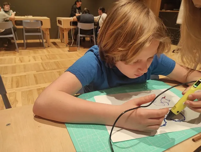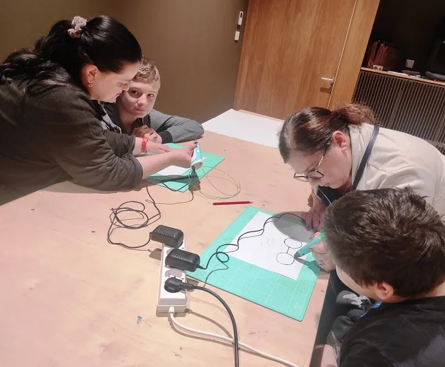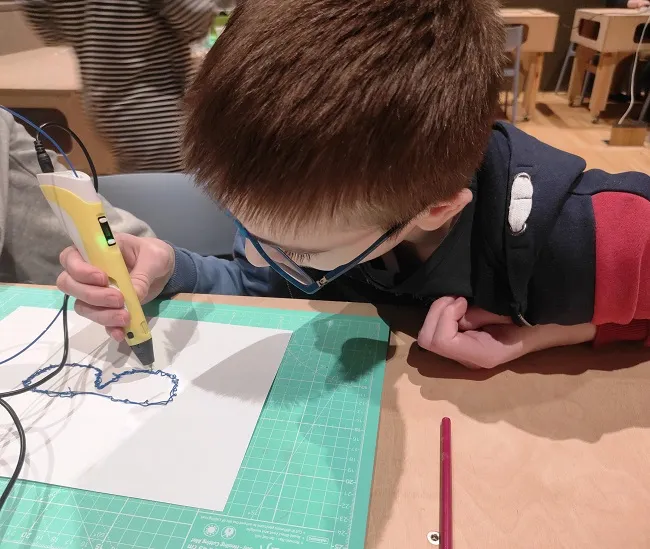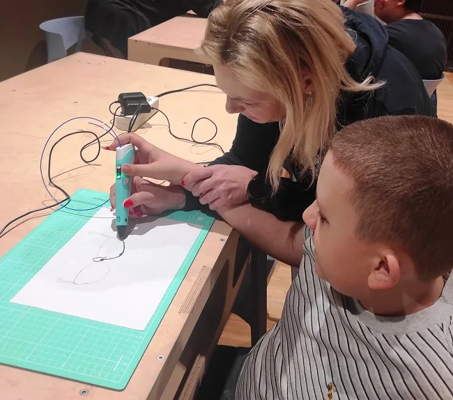 W części warsztatowej, podczas tematycznych zajęć „Od pióra z Milusina do długopisu 3D”, wszyscy z zaangażowaniem tworzyli binokle w wersji przestrzennej.