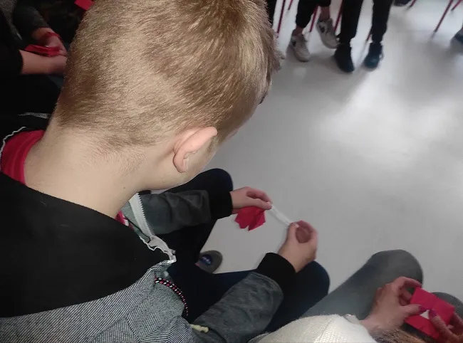 14 lutego to dzień, w którym wspominamy postać świętego Walentego i bliskie nam osoby. W tym roku nasze walentynkowe spotkanie z przyczyn organizacyjnych odbyło się w piątek, 3-go marca. Pod kierunkiem Pani Celinki odwiedzili Nas uczniowie – wolontariusze ze Szkoły Podstawowej z Oddziałami Integracyjnymi nr 354, którzy z zaangażowaniem przygotowali walentynkowe serca z ukrytym przesłaniem – cytatem wybranym przez Panią Celinkę.