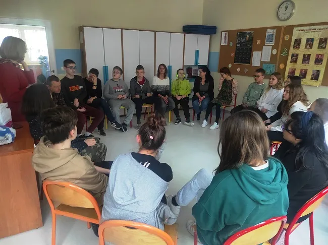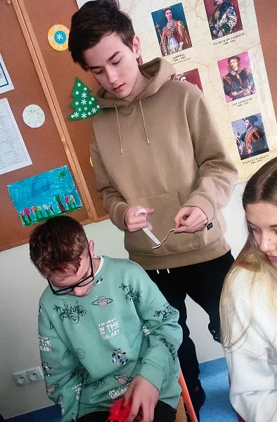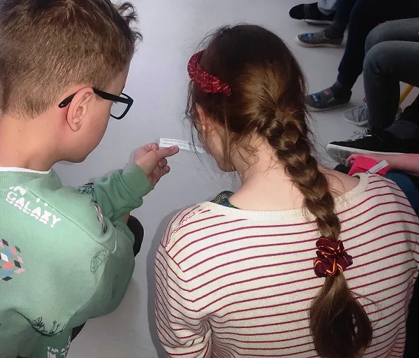 Poznawaliśmy się, uczniowie czytali samodzielnie lub z pomocą starszego kolegi i koleżanek wylosowane myśli motywacyjne. Byliśmy razem.