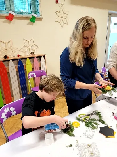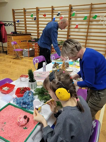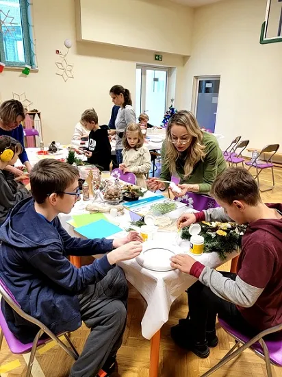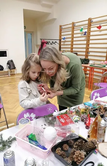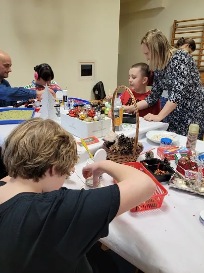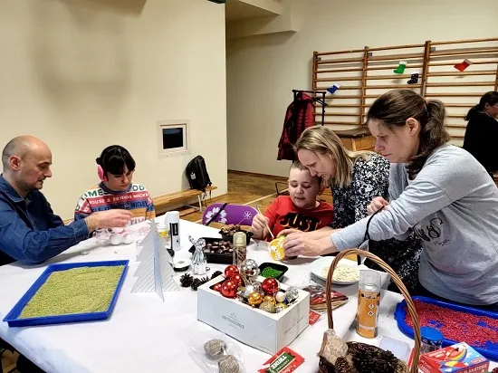 Celem spotkania było rozbudzenie aktywności uczniów, doskonalenie umiejętności manualnych, kształtowanie wrażliwości i ekspresji twórczej oraz wzmacnianie wzajemnych relacji opartych na szacunku, akceptacji i miłości. Warsztaty były niezwykłym przeżyciem! W świątecznej atmosferze powstały pełne uroku dekoracje. Uczniowie, rodzice i nauczyciele z zapałem wykonali: stroiki, świeczniki, bombki, choinki, wykazując przy tym wiele pomysłowości i kreatywności. Wszystkim uczestnikom spotkania towarzyszył bardzo dobry nastrój. Serdecznie dziękujemy za przybycie, zaangażowanie, wspólnie spędzony czas i dobrą zabawę!