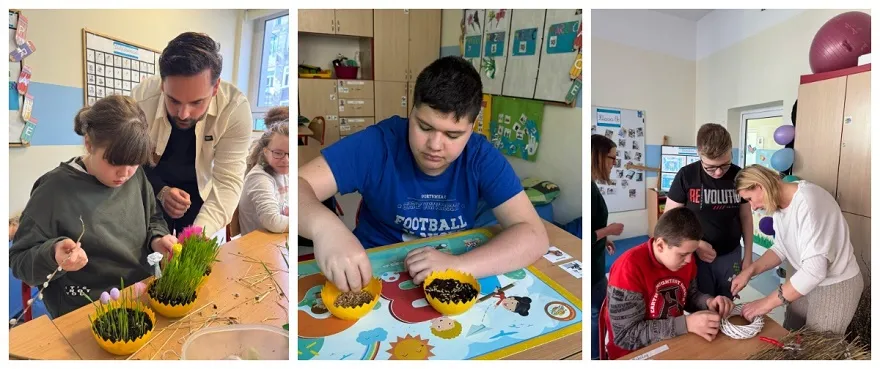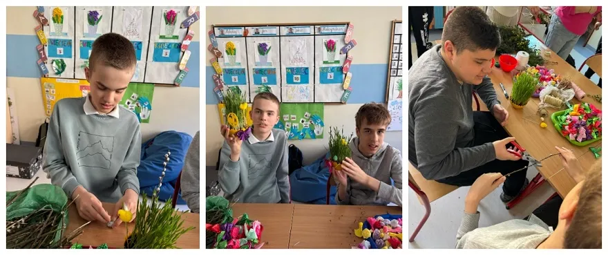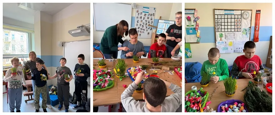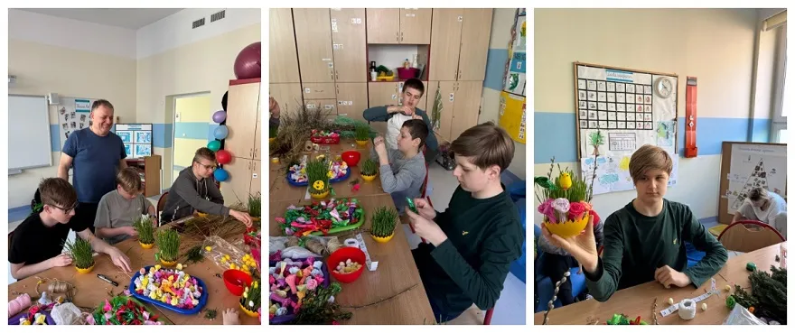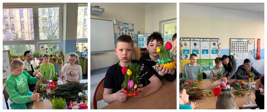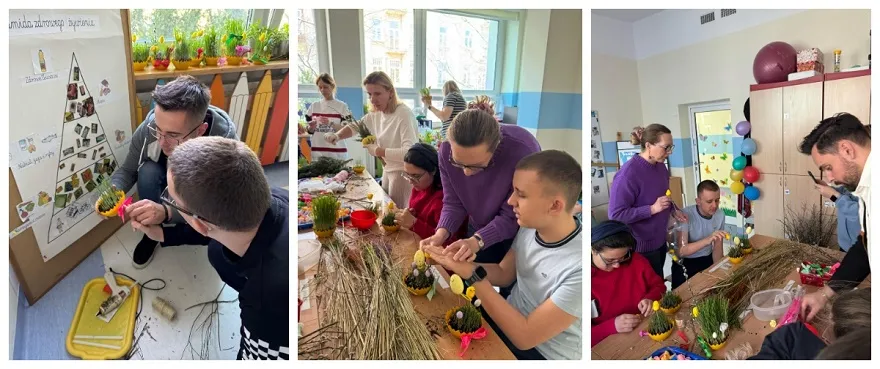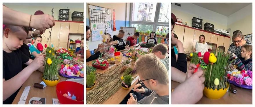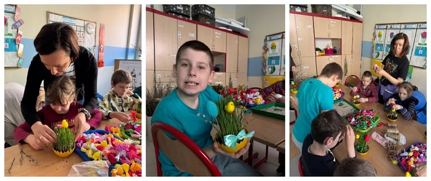 W poniedziałek 7 kwietnia 2025 roku, w naszej szkole panowała radosna, świąteczna atmosfera! Odbyły się warsztaty wielkanocne, podczas których uczniowie z wielkim zaangażowaniem tworzyli piękne palmy wielkanocne i urocze ozdoby. Tym razem mieliśmy dodatkową radość! Posadzony wcześniej owies zdążył się już pięknie zazielenić, co stworzyło idealną, naturalną bazę do dekorowania.
