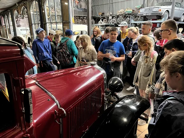 Drugim punktem naszej wycieczki było Muzeum Motoryzacji i Techniki w Otrębusach. Podczas zwiedzania nasi uczniowie mieli okazję zobaczyć kolekcję zabytkowych pojazdów, które są już niespotykane na naszych drogach. Pani przewodnik ciekawie opowiadała niezwykłe historie wybranych pojazdów. Poznaliśmy też liczną kolekcję unikatowych rekwizytów. Największym zainteresowaniem cieszyły się samochody oraz pojazdy, które brały udział w produkcjach filmowych. Po zapoznaniu się z całą ekspozycją uczestnicy wycieczki udali się na przejażdżkę po okolicy angielskim autobusem. Na koniec zjedliśmy smaczny posiłek.