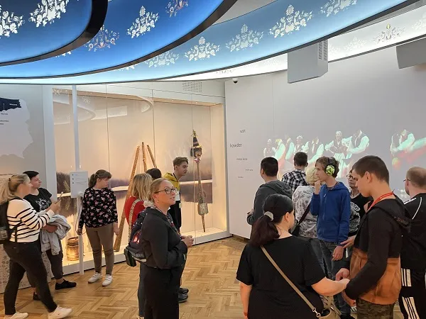 W piątek 27 września 2024r. przyszedł czas na długo wyczekiwaną przez uczniów wycieczkę do Otrębus. Każdy z uczestników wyprawy punktualnie zajął miejsce w nowoczesnym autokarze. Pani Dorota podzieliła nas na dwie grupy, aby usprawnić zwiedzanie. Podczas wycieczki odwiedziliśmy Centrum Folkloru Polskiego w Karolinie. Mogliśmy odkrywać polski folklor za sprawą dźwięków, muzyki i tańca!
