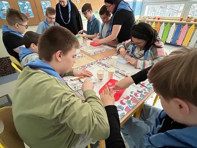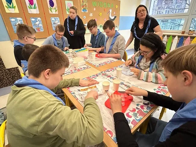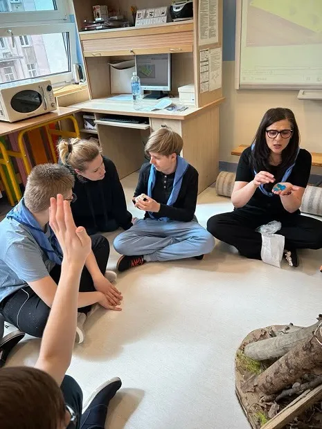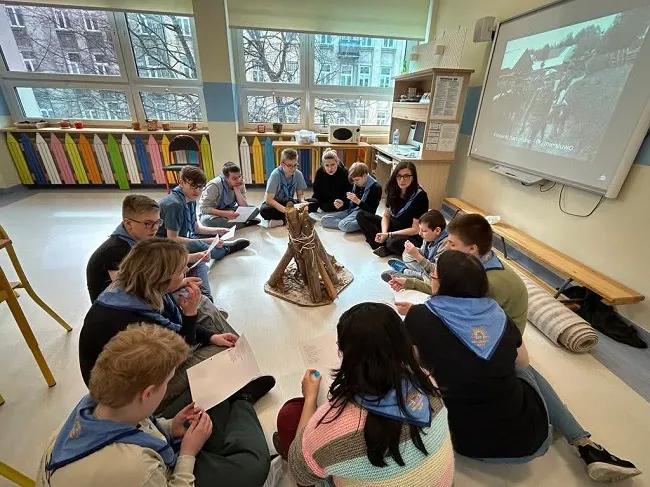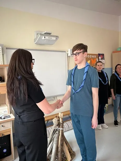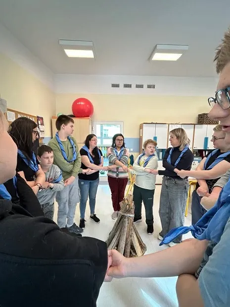 Po zakończeniu zajęć omówiliśmy ich przebieg i wspólnie zaśpiewaliśmy "Bratnie słowo". Na zakończenie zawiązaliśmy krąg – symbol naszej jedności – i wspólnie zgasiliśmy ognisko. Harcerze chętnie pomagali w sprzątaniu, pokazując swoje zaangażowanie i ducha współpracy.