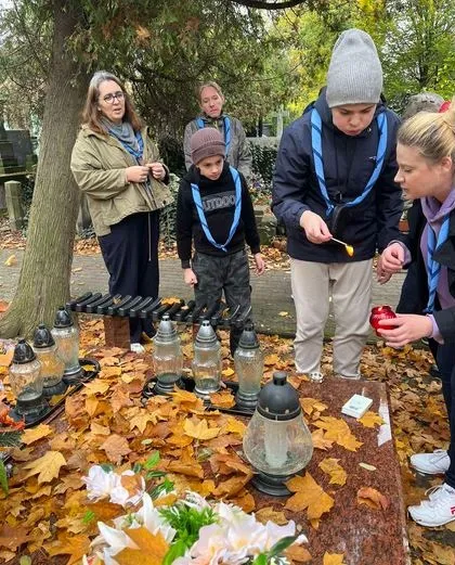 W dniu 30 października 2024 r. nasi najmłodsi harcerze z 430 WDH Odkrywcy Nieznanego Szlaku wybrali się na Cmentarz Bródnowski celem uczczenia pamięci zmarłych. Dzieci wspólnie z instruktorami uporządkowały mogiły i zapaliły znicze przed pomnikiem upamiętniającym bohaterów poległych w latach okupacji. Harcerze mogli posłuchać opowieści instruktorów na temat trudnej przeszłości naszej ojczyzny.