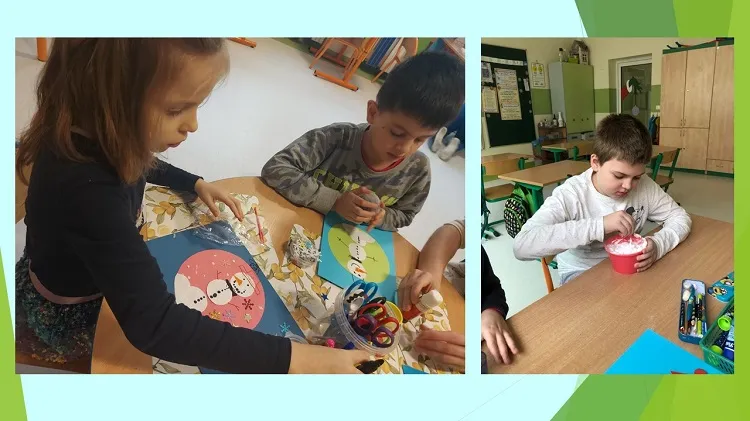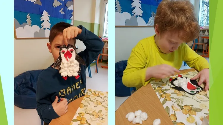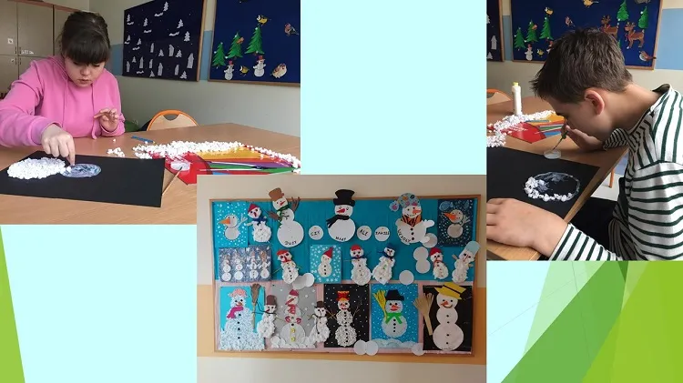 Zima okazała się doskonałą porą na małe eksperymenty – uczniowie klasy IIb sprawdzili czy można stworzyć sztuczny śnieg i do czego można go wykorzystać – wykonali z niego bałwana na naszą zimową wystawę prac pt.„ Czy mały, czy duży ale zawsze wesoły!”
