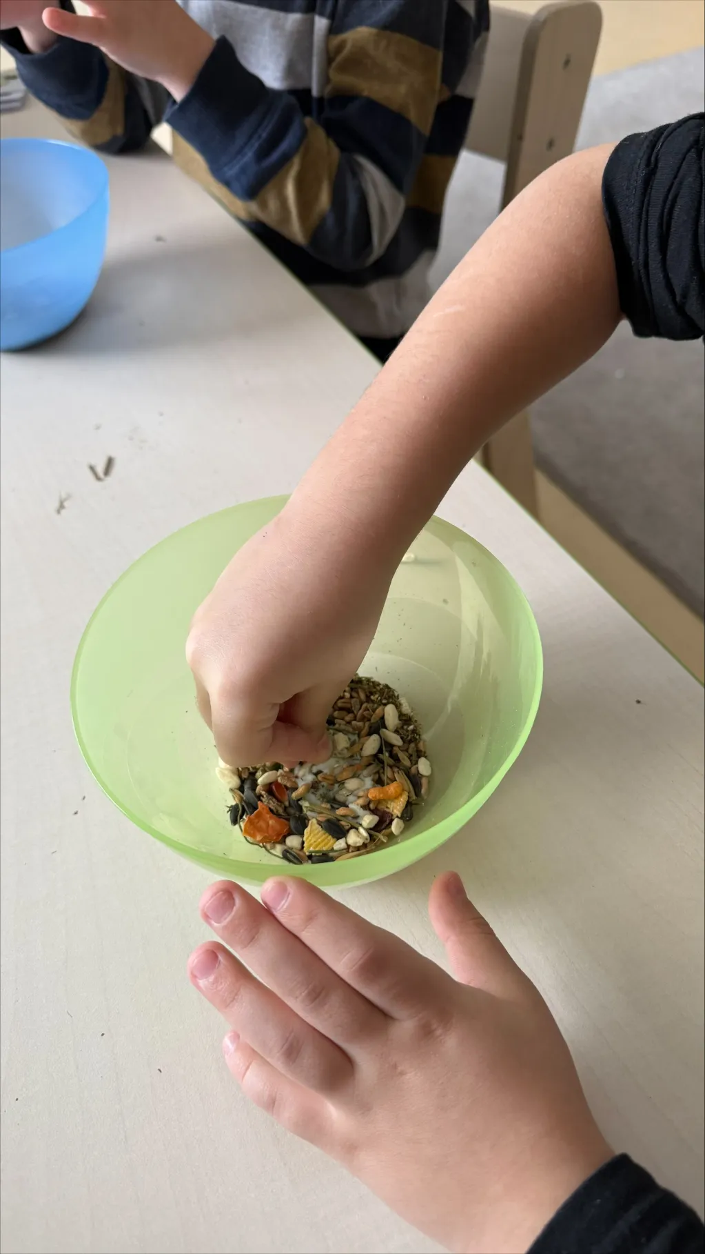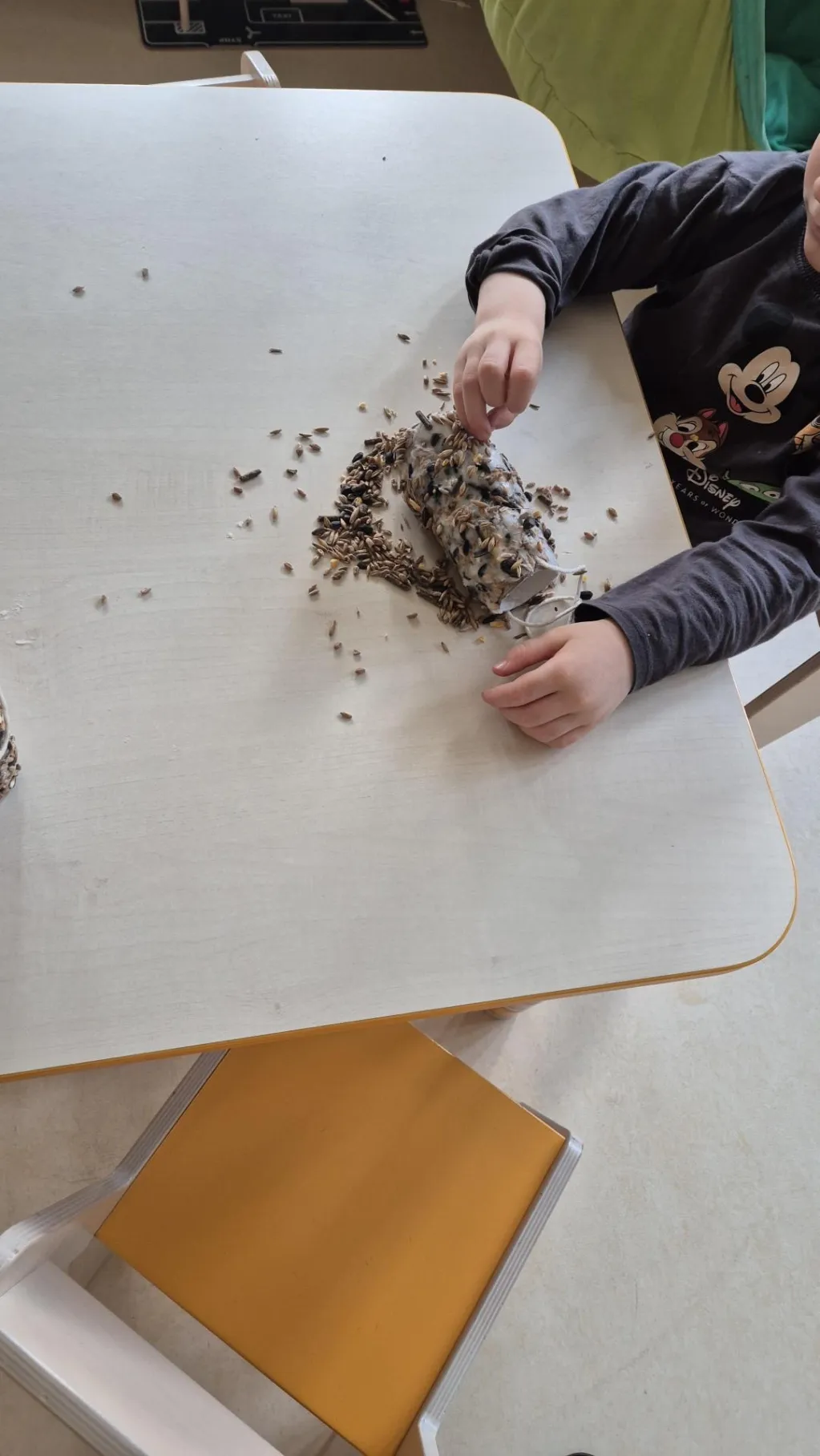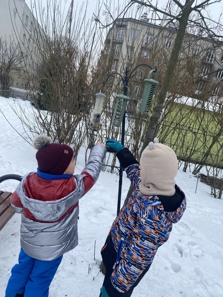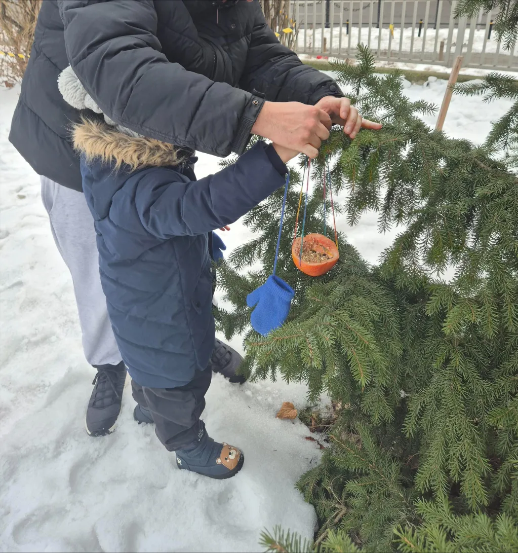 W ostatnim czasie towarzyszyły nam wyjątkowo mroźne i śnieżne dni, które dały się odczuć nie tylko ludziom, ale także naszym małym, skrzydlatym przyjaciołom. Zima to trudny okres dla ptaków – niskie temperatury i warstwa śniegu utrudniają im dostęp do pożywienia. W trosce o ptaki przedszkolaki przygotowały zawieszki pełne ziaren. Dzieci samodzielnie mieszały ziarna, formowały kule i zawieszały je na gałęziach drzew. Dzięki takim działaniom, mały gest może mieć wielkie znaczenie dla naszych skrzydlatych przyjaciół.