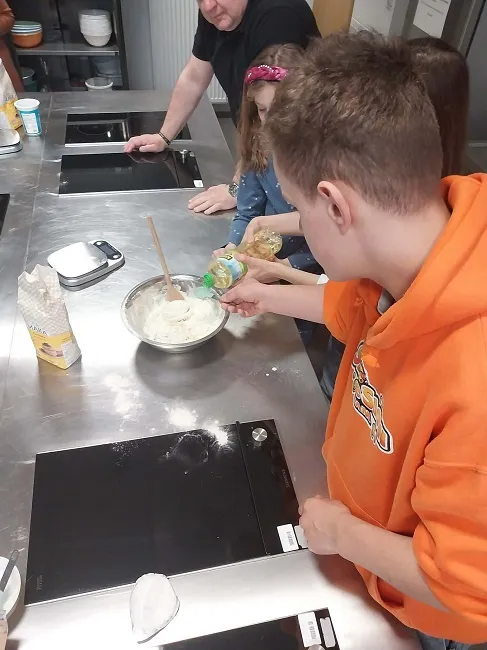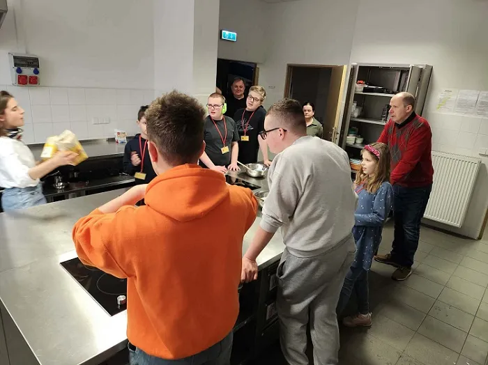Najciekawszą częścią wizyty w dniu 14 kwietnia 2026 r. były zajęcia kulinarne „Kuchnia Łemków”. W ich trakcie poznaliśmy tradycyjne potrawy oraz składniki charakterystyczne dla tej kuchni. Dowiedzieliśmy się, że dania łemkowskie są proste, oparte na lokalnych produktach, takich jak ziemniaki, kapusta, kasze. mąka, czy nabiał.