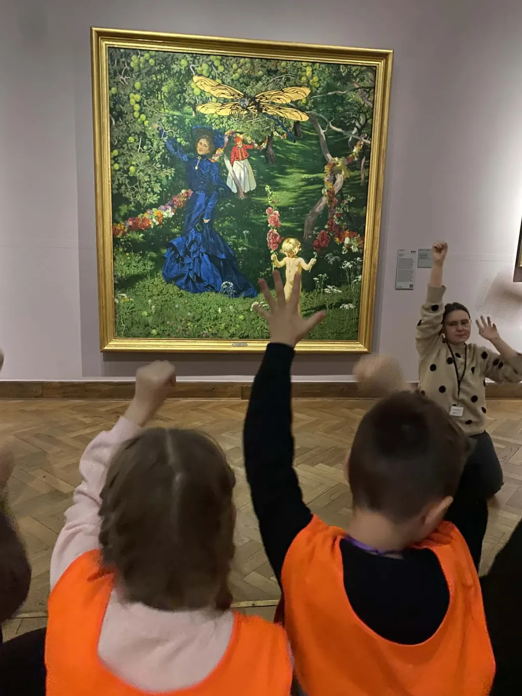 W dniu 18 grudnia dzieci z grup 6, 7 i 8 wybrały się razem z opiekunami na wycieczkę do Muzeum Narodowego. Mieliśmy okazję uczestniczyć w ciekawej lekcji muzealnej pt. "Pory roku, pory dnia". Podczas wycieczki edukatora oprowadziła nas po galerii znakomitych artystów polskich t,j. J. Malczewski, J. Chełmoński, J. Mehoffer. Podczas lekcji dzieci zgadywały, jaką porę roku przedstawiają oglądane przez nas obrazy. Na koniec każde z dzieci mogło wykonać własną pracę plastyczną inspirując się widzianymi wcześniej dziełami sztuki.