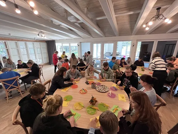 Podzieliliśmy się na dwie grupy. Jedna z nich pracowała z dynią, przygotowując pyszne jesienne przetwory. Druga grupa wykonywała własnoręcznie ekotorby, które były naprawdę niezwykłe. Mieliśmy także okazję do kontaktu ze zwierzętami , co sprawiło wszystkim dużo radości.