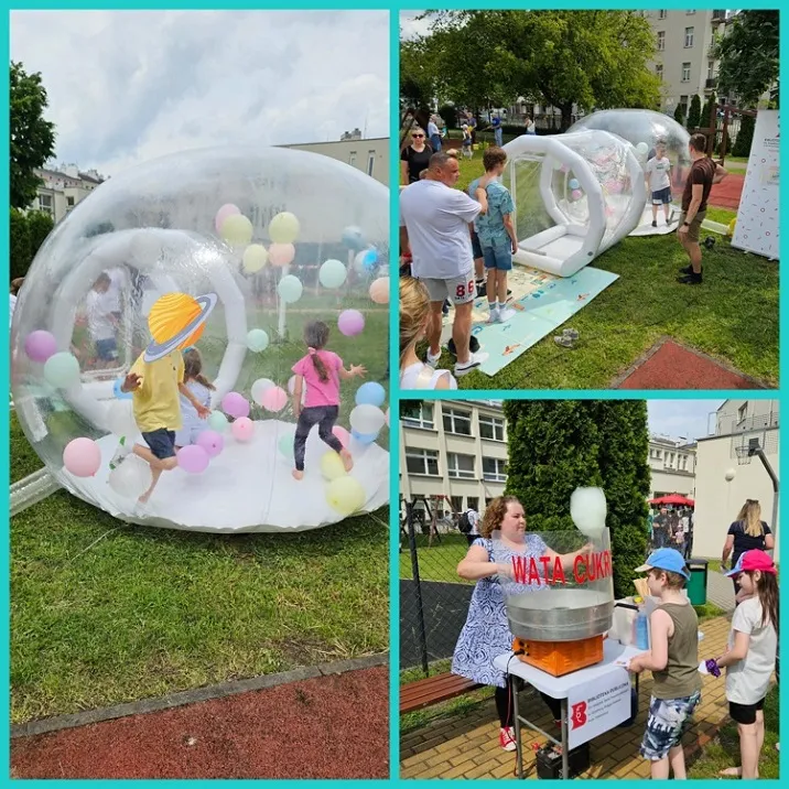 Nie zabrakło uwielbianych przez dzieci baniek mydlanych, malowania twarzy, tatuaży, wiązanych baloników, kącików sensorycznych, plastycznych i relaksacyjnych. Nowością w tym roku były balony z helem, plecenie kolorowych warkoczyków, kosmiczny tunel, dmuchany domek z balonami oraz – dla najodważniejszych, dzięki firmie Animale – niezwykła wystawa żywych pająków i węży w świetlicy szkolnej!