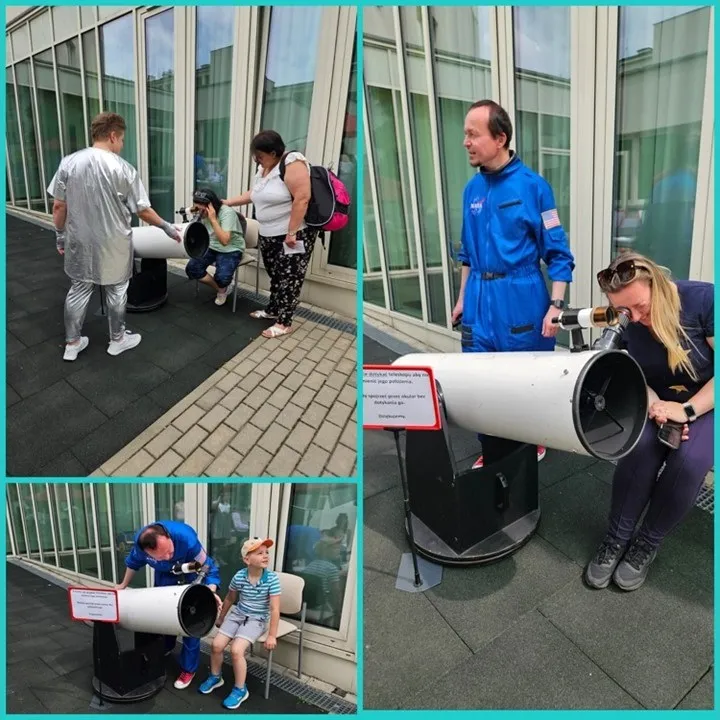 Po części artystycznej rozpoczęliśmy dalszą eksplorację kosmicznych atrakcji. Na naszych gości czekała prawdziwa galaktyka niespodzianek, rozlokowana zarówno na zewnątrz, jak i w salach. Już przy wyjściu ze szkoły na najmłodszych czekał bohater Psiego Patrolu – Chase we własnej osobie! A dalej? Teleskop skierowany ku gwiazdom, który pozwalał każdemu – dużemu i małemu – poczuć się jak prawdziwy astronom. Kopernik byłby dumny!
